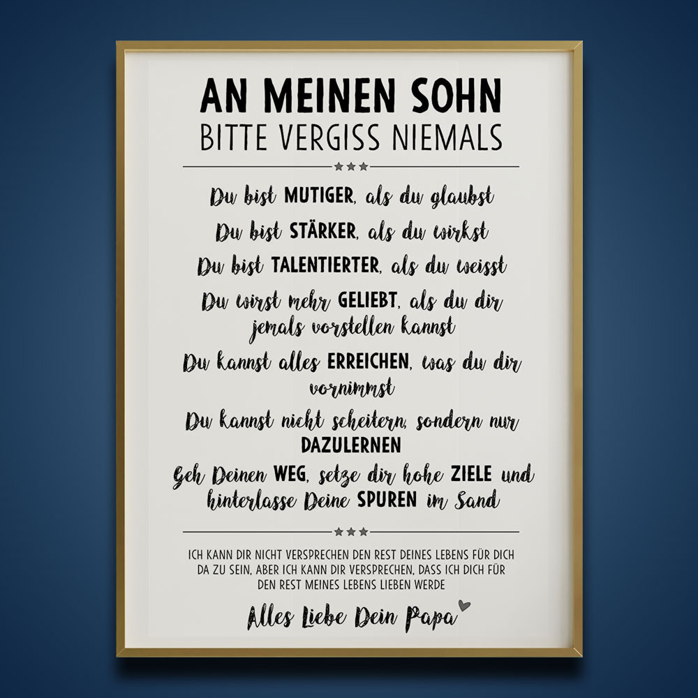 In Erinnerung an den besten Sohn den man sich jemals vorstellen konnte dein dich immer im Herzen tragender Vater